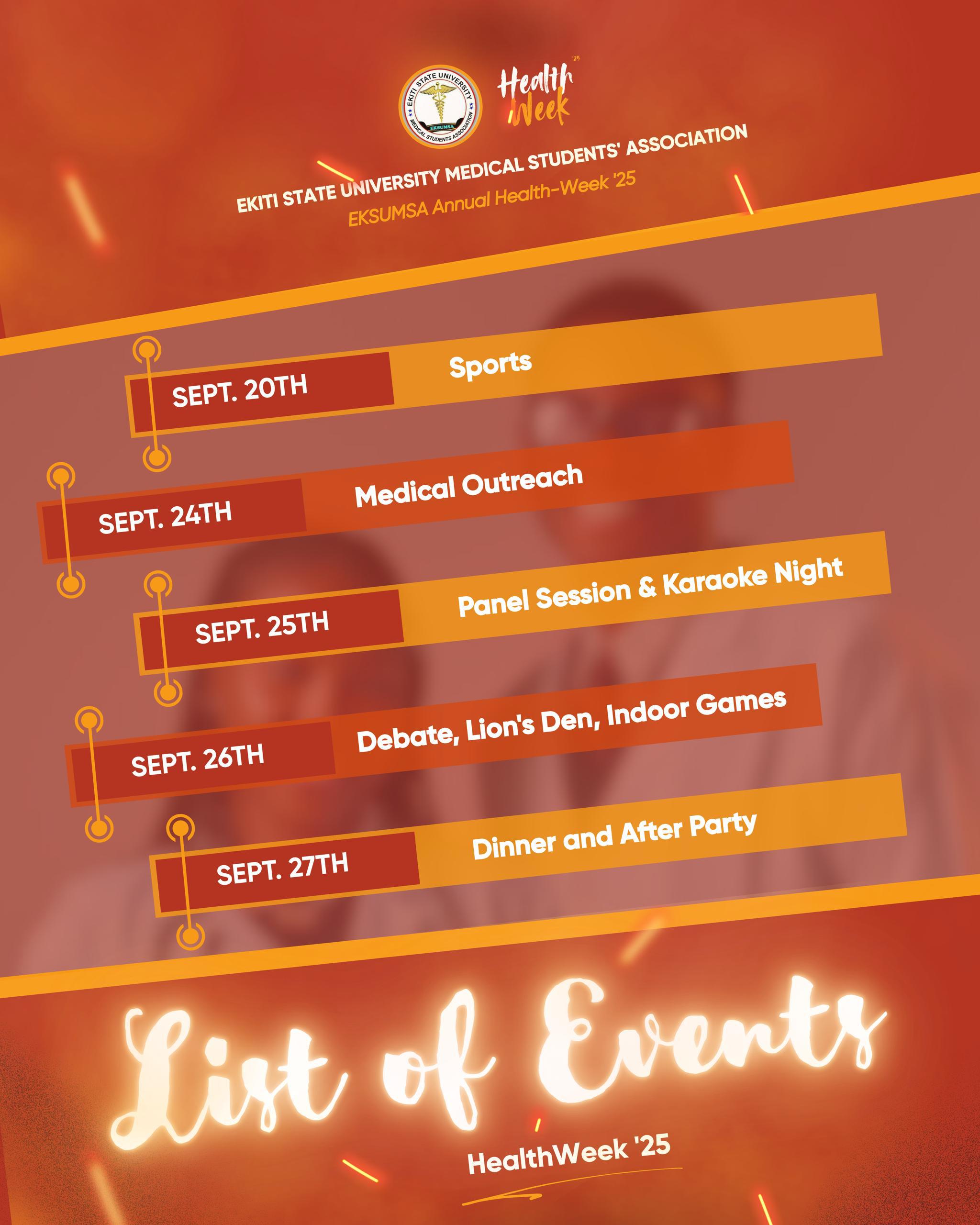 EKSUMSA Health Week is one of the most anticipated flagship events of the Ekiti State University Medical Students’ Association. Held annually, this week-long program is dedicated to promoting health awareness, community service, and academic enrichment.